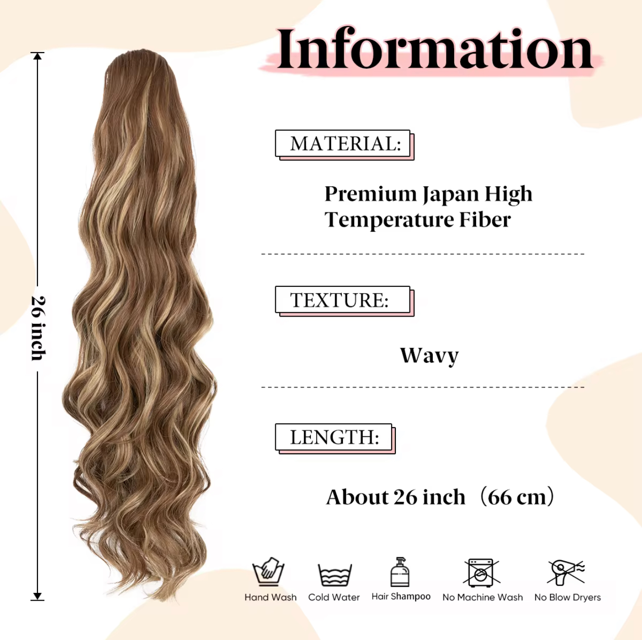 Natural wave drawstring ponytail extension 26 inch, available in 4 colors! Transform your hairstyle in less than a minute!